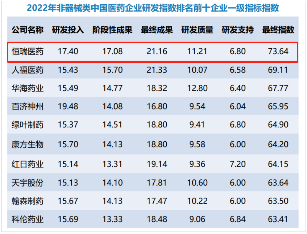 研发量质齐升,DB真人医药蝉联非器械类中国医药企业研发指数排名榜首